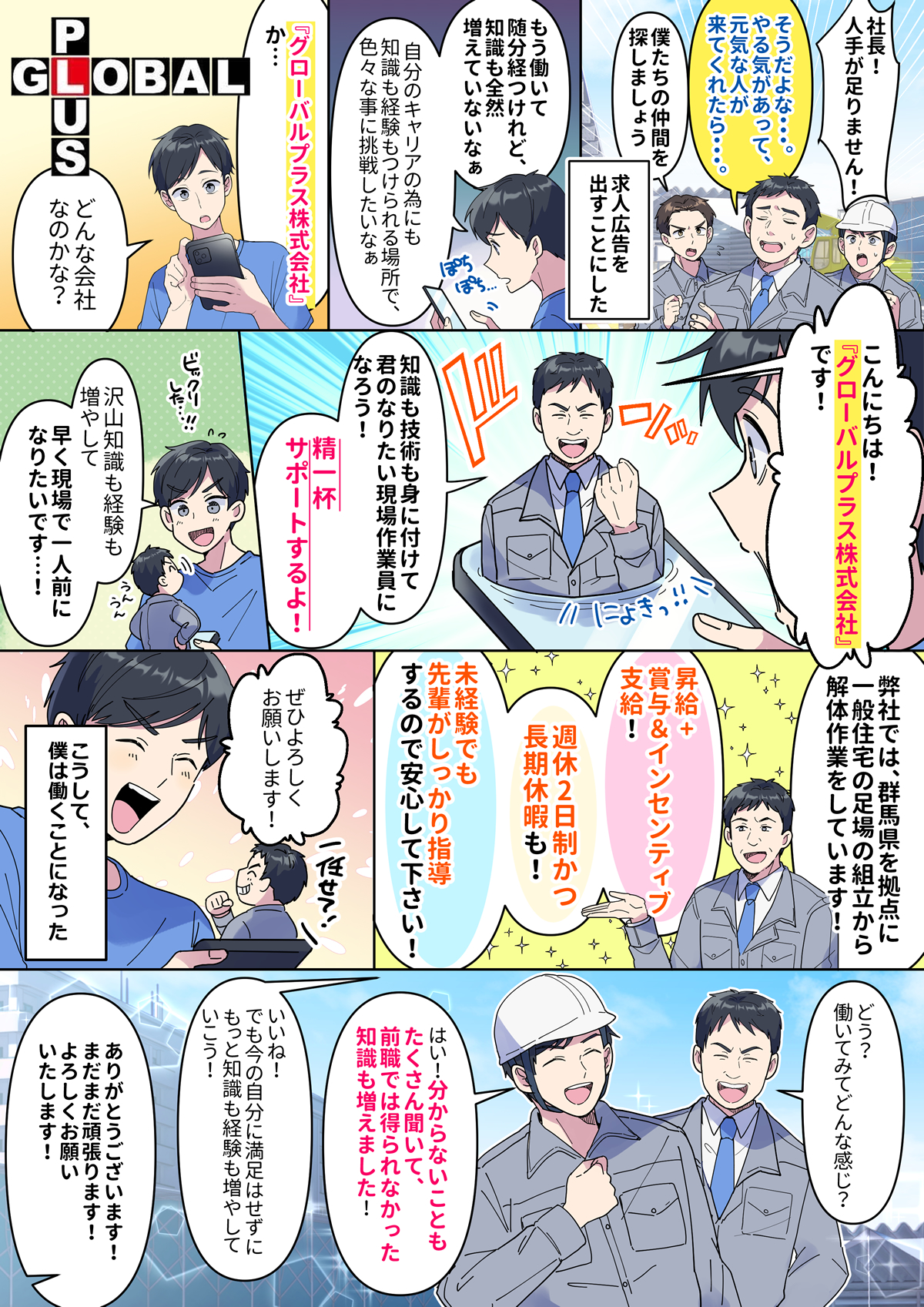 グローバルプラスは群馬県太田市で足場工事などを行っている会社です。群馬エリアを中心に数多くのご依頼を頂いており、今後も取引先の期待に応えられるよう新メンバーを募集することになりました。